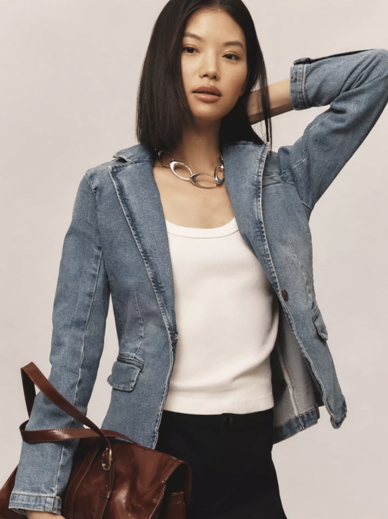 Denim. It started during that new pre-fall era, and it’s not going away. And I don’t just mean your standard jeans. Denim everywhere. Denim dresses, denim jumpsuits, and denim sets complete with tailored denim pants and vests.