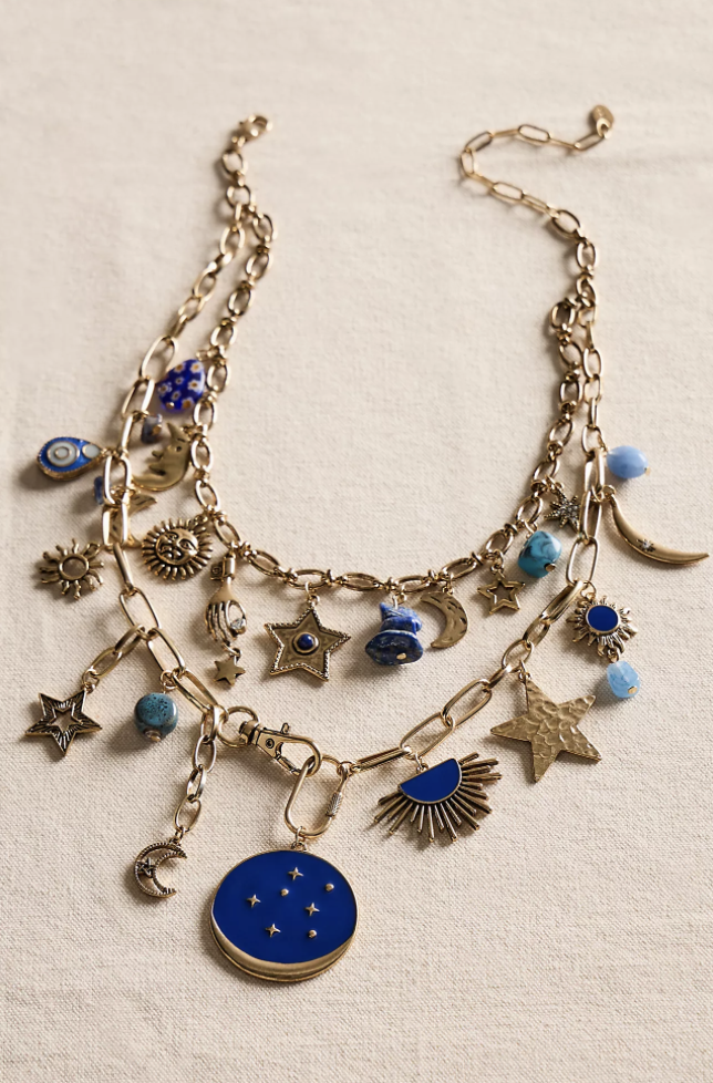 Accessory Maximalism. The more the better. I know Coco Chanel told us to check our accessories at the door and always remove one item, but this trend does not agree. I’m seeing 2, 3, or even 5 brooches on a cardigan or coat. Necklace layering. All the charms. Fringe, tassels, layers, movement, yet balanced with sleek lines. The aesthetic is becoming less about “quiet luxury” and more about meaningful detail. Think your outfit is complete? Nope. Add one more item.